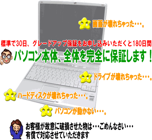 ※症状は、ほんの一例です。その他ハードに関する不良は完全に保証いたします。