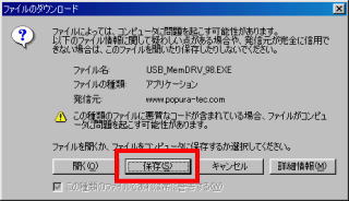 [1]ソフトのダウンロード(約160KB) ここをクリックしてソフトをダウンロードしてください。 左の画面が表示されたら[保存(S)]を選んでください |