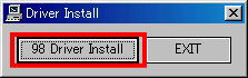 左の画面が表示されたら [98 Driver Install]を押してください。 ドライバのインストールが完了したら [OK]を押してください。 パソコンを再起動してください。 |